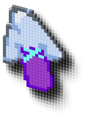 This cursor has purple, teal, and grey as its colors.
